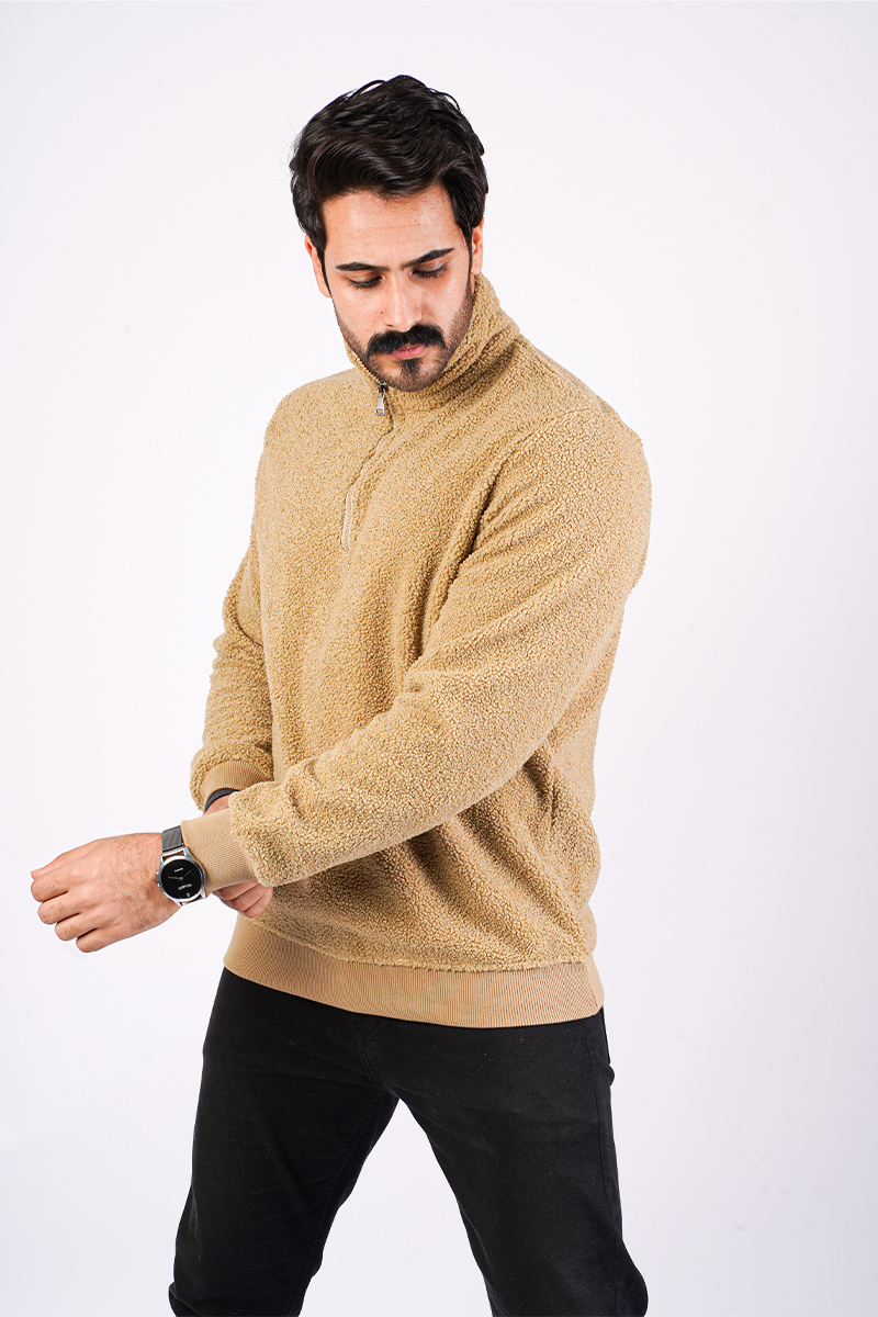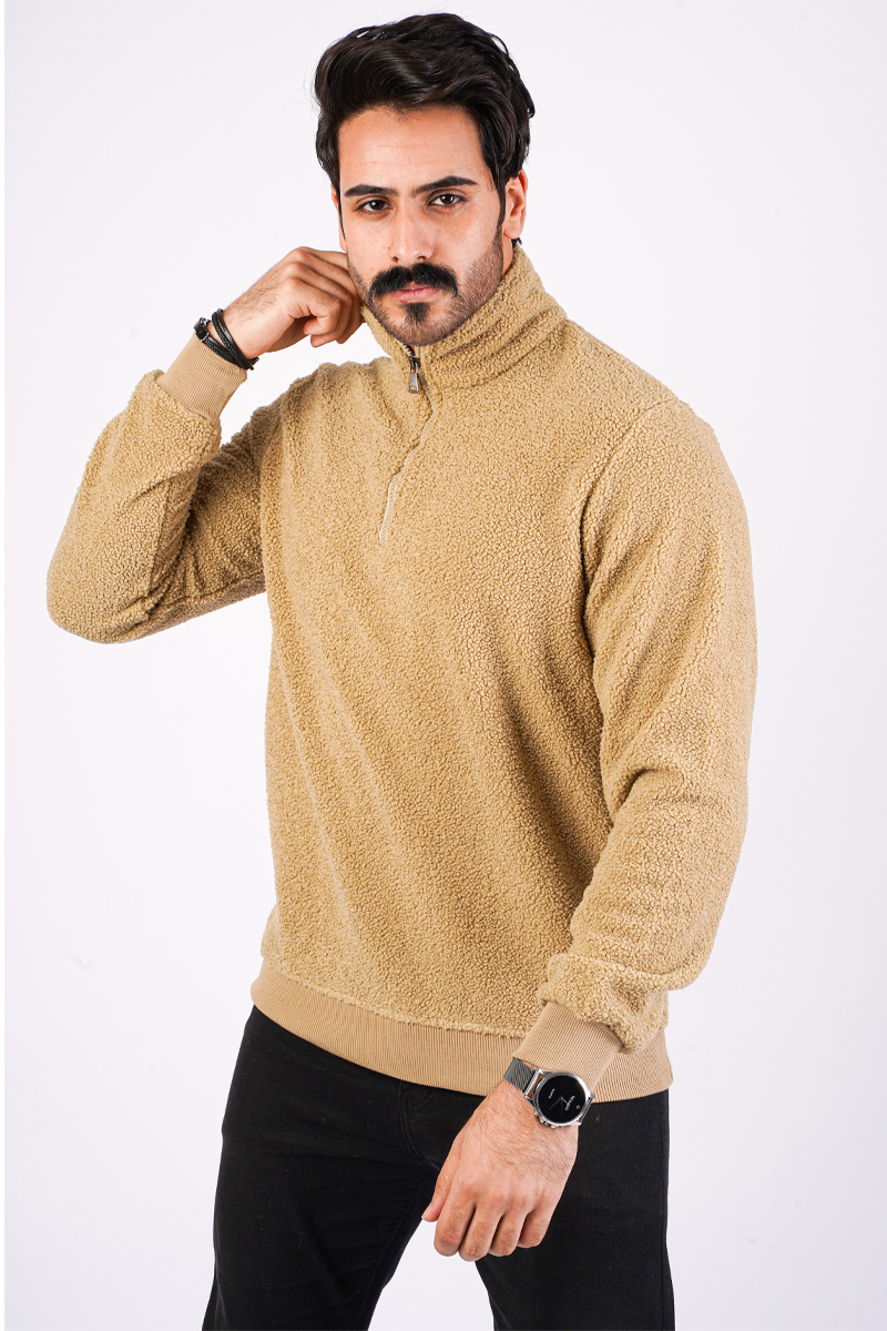 سويت شيرت فرو مبطن - بني رملي