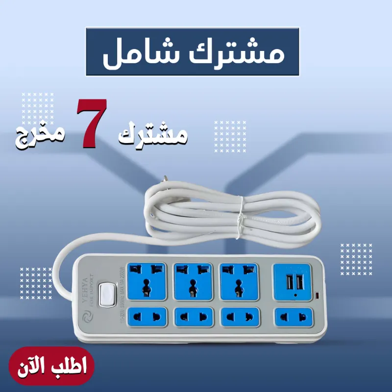 بتحتار عشان عايز تشحن حاجات كتير في وقت واحد ومش بتلاقى مخارج للكهرباء وفرنالك المشترك بـ 7 مخارج وكمان فيه مخرجين USB عشان توفر وقتك وتشحن براحتك الحق اشتريه قبل نفاذ الكمية.